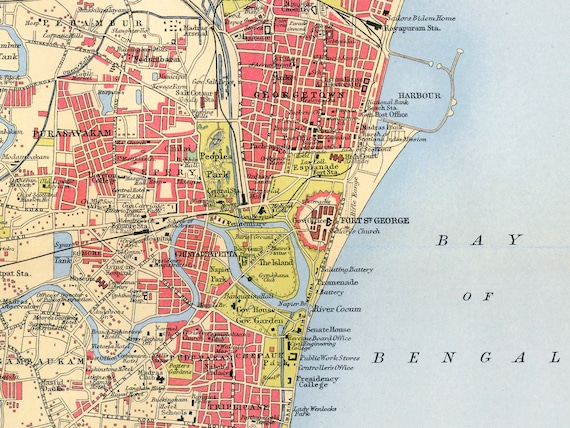 Vintage Map of Madras, Chennai Madras India, Madras Print, Madras