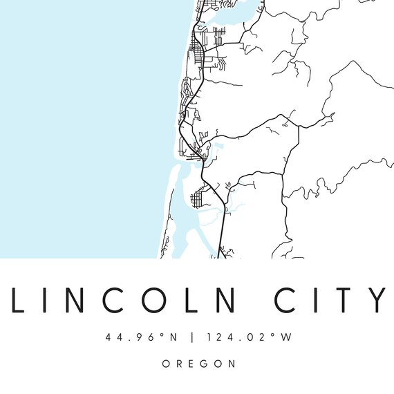 Lincoln City Oregon, Digital Art Map, Digital Print Poster, Blue